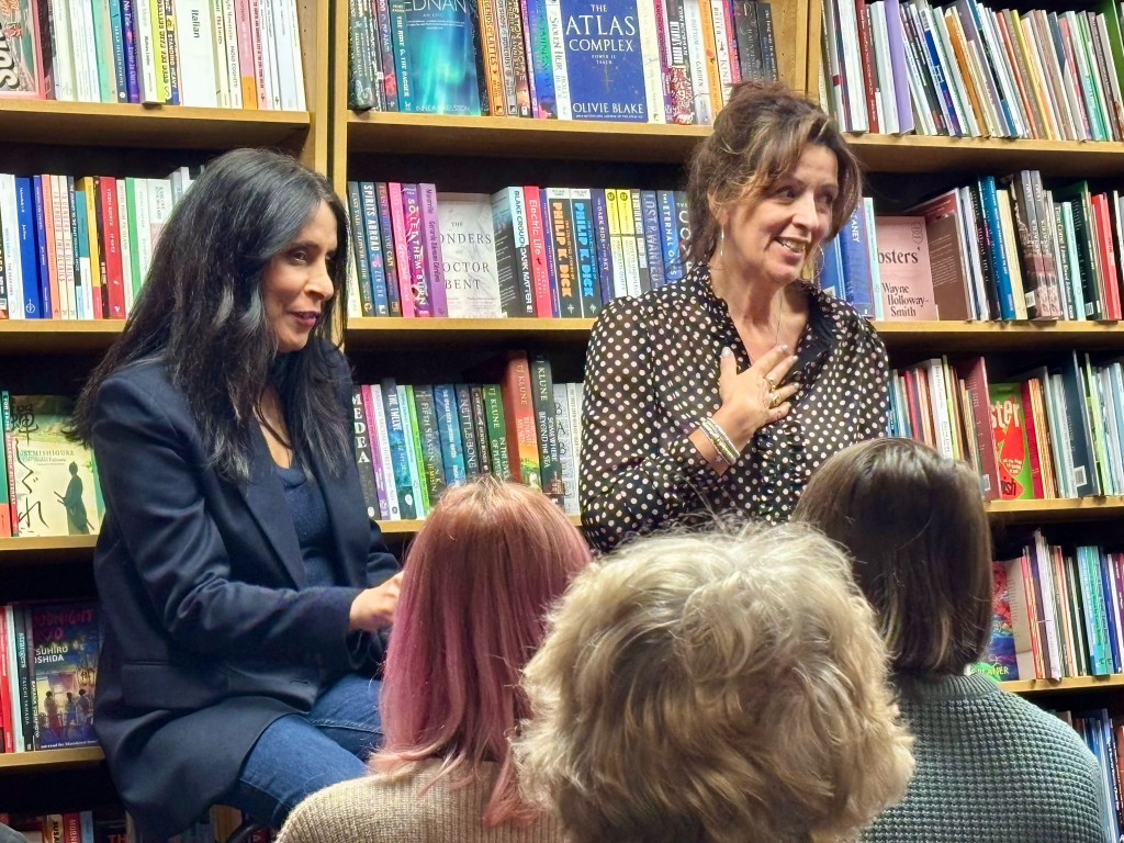 18 May 2022, Five Leaves Bookshop, Nottingham: Kim Slater and Helen Cooper, with Lotty McLean, Rebekah Hemmens and Abigail Cobley.